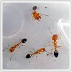 Tiny, major workers 3mm long with reddish-yellow body and end of gaster black; minor workers 2mm long with head and mesosoma pale in colour; two nodes. Polymorphic, with major and minor workers.
