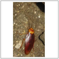 The large cockroach encountered flying into homes. Not a regular house-dweller, it prefers dark, moist and warms areas, such as drains and sewers.