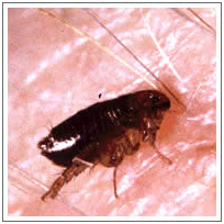 Feeds on blood - commonly infests Cats and Dogs and readily bitesHumans. Its salivary secretion causes itching and discomfort for many days, especially to allergic people. An excellent jumper, moves easily and fast through hair or fur of the host.