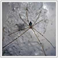 Arachnid; adult 4-5cms, extremely small body and long legs (cobweb spider)